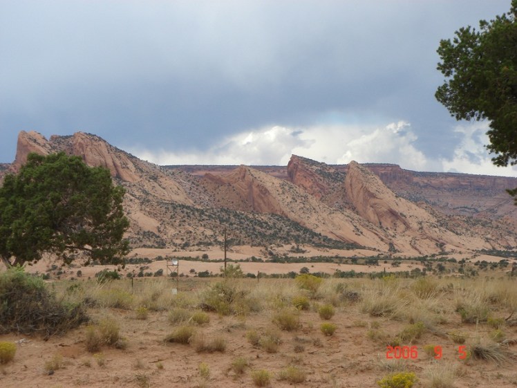 Sen brände vi på fram till Kayenta, förutom ett stopp i Tuba city. Längs vägen fanns flera marknadsplatser där indianer sålde hantverk. Nu var vi nämligen inne i Navajoland. Området är ett indianreservat för navajoindianer. Det är ett vackert landskap, rödskiftande berg på ena sidan och busk- och trädförsedda berg på den andra. Varmt på dagen och kyligt på natten. Kayenta ligger vid Monument valley, detta röda område. Här har otaliga vilda västern-filmer spelats in.