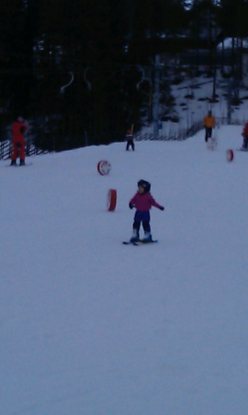 störtlopp mer än att ploga och svänga. Men så länge hon tycker det är kul är jag glad! Moa (6) är ju en naturbegåvning, det är så kul att se hennes svängar och glädje när hon åker. Det är ett par plusgrader så det är smöråkning som gäller. Helt ok väder på fm men på em började det regna så efter en sen lunch på restaurangen i centrat åkte vi till stugan för att softa.