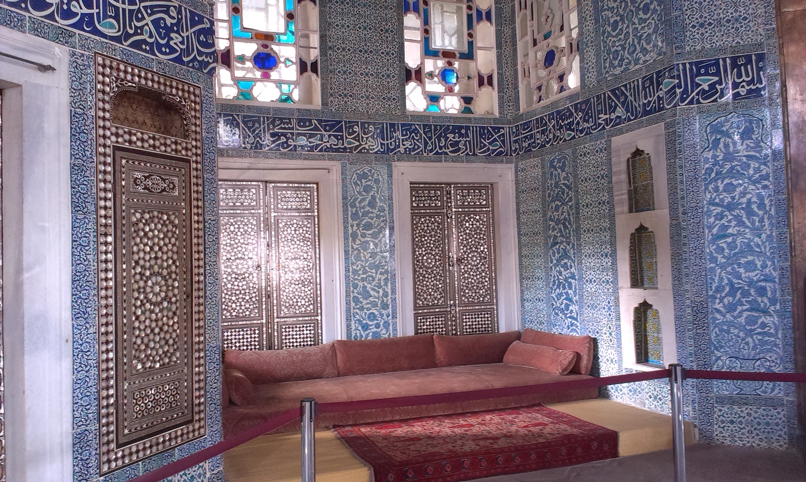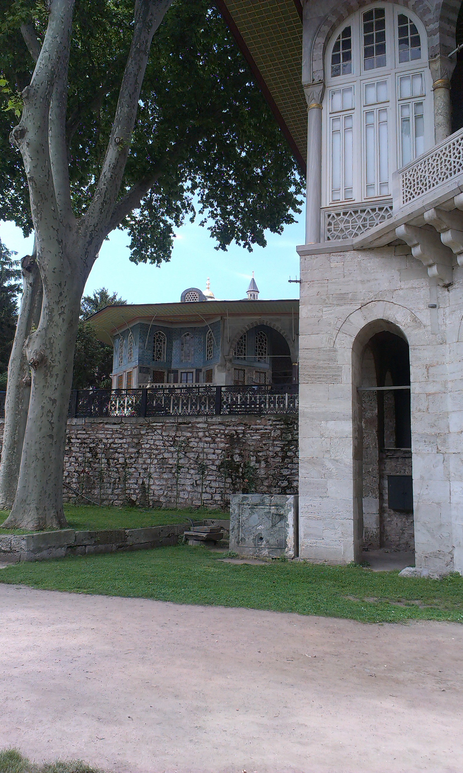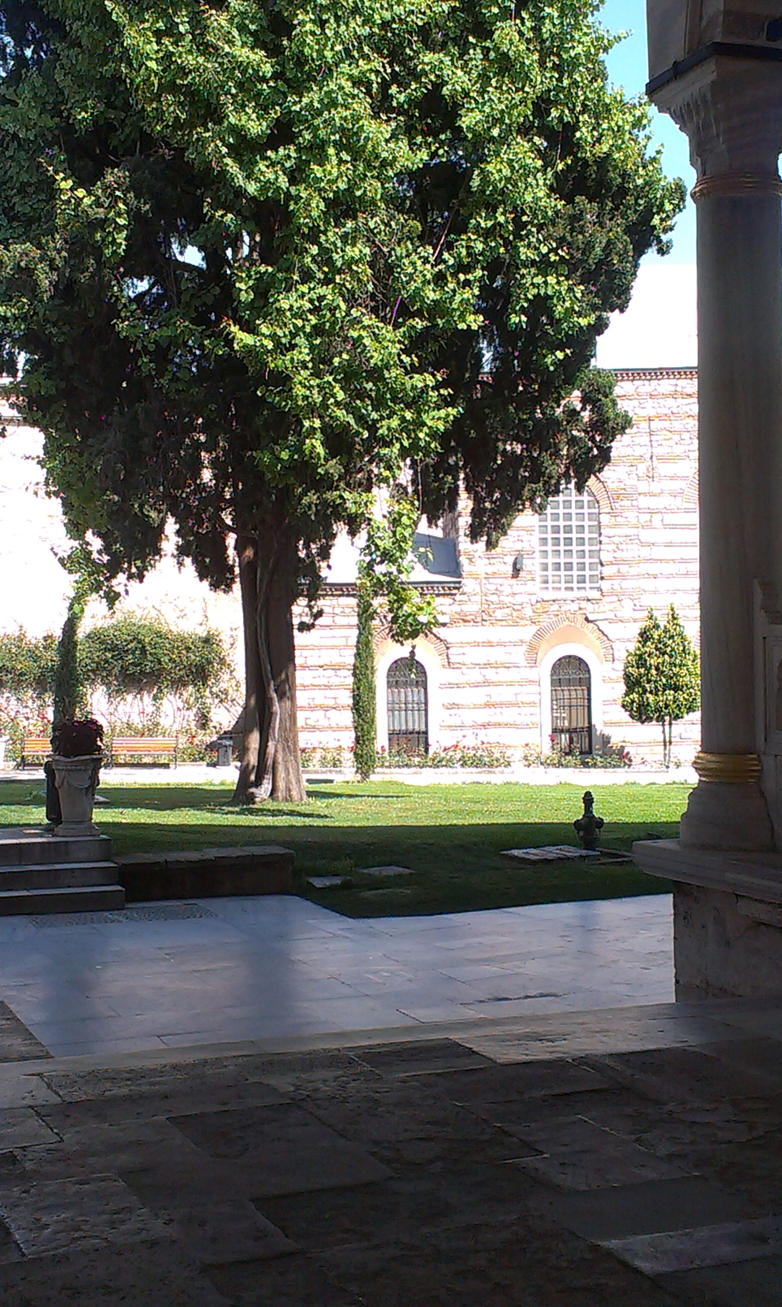 Vårt första mål för dagen var det stora Topkapi- palatset. Där spenderade vi drygt tre timmar och skippade då ändå två av dess attraktioner; klockutställningen och relikrummet. Men haremet såg vi och skattkammaren som fick en att häpna. 86 karats diamant, golvljustakar i 48 kg rent guld och otaliga smycken, dosor, troner mm i guld, smaragder, rubiner, pärlemor osv. Vilken otrolig rikedom allt detta utstrålat. Palatset var sultanernas hem under flera hundra år och här bodde också uppemot 500 konkubiner som tävlade om sultanens gunst. Här kan du imponeras av tidig framstående byggnadskonst men också av vacker utsikt.