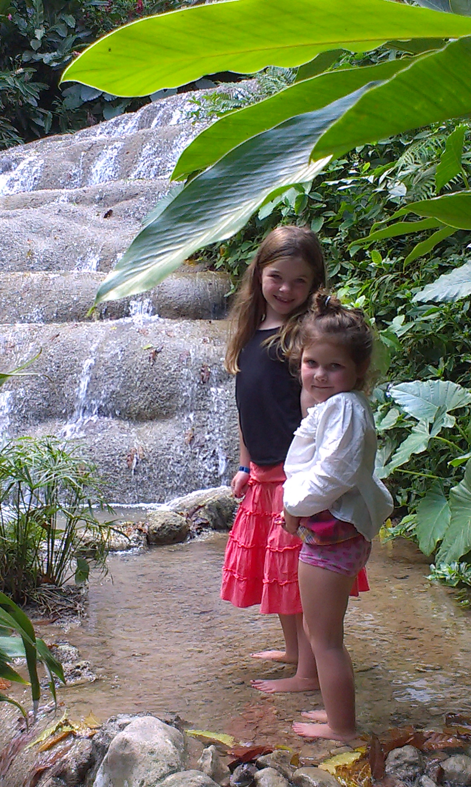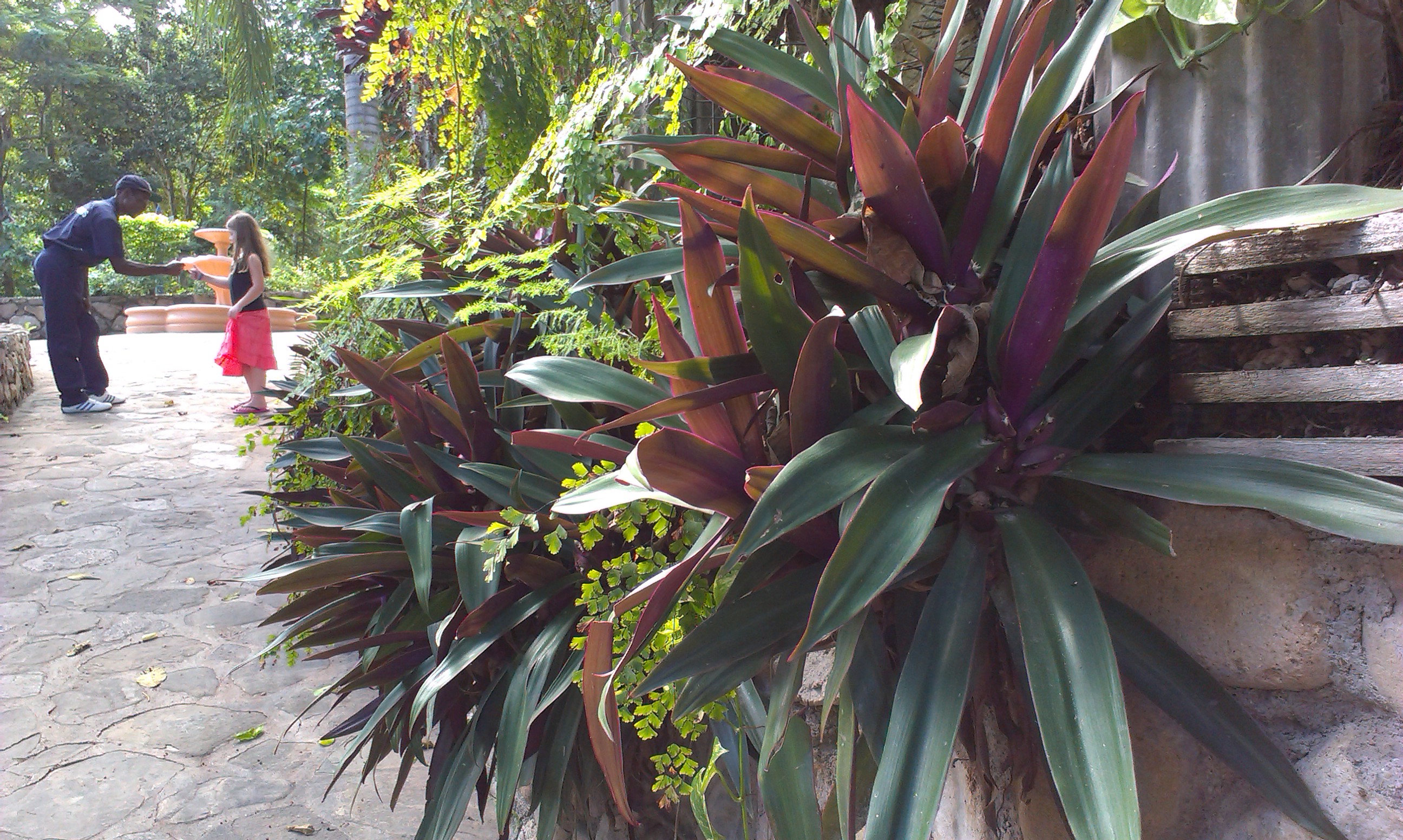 Fina trädgårdar finns det överallt, så även här på Jamaica. Idag hyrde vi en taxibuss som tog oss till Coyaba river gardens som ligger strax utanför Ocho Rios, ca 25 minuter fr Runaway bay. Det här var verkligen en oas och ett skönt avbrott från strand och pool. Guiden visade oss bland annat en mängd olika ingefära (röd, rosa, gul osv), kalabass, mango, begonior, gummiträd, ananas och mycket mer. Guiden var för övrigt en skön lirare som avslutade varje mening med ett ‘Respect, man’. Allra största behållningen var de vackra kolibris vi såg runt om i trädgården. Vilken vacker fågel! Tyvärr är den också en snabb fågel så det var lönlöst att fånga en på bild. Men vattenfallet Mahoe falls som kändes som en Dunn’s river i miniatyr fick vi med. Och den fantastiska utsikten över havet och Ocho Rios. Respect, man!