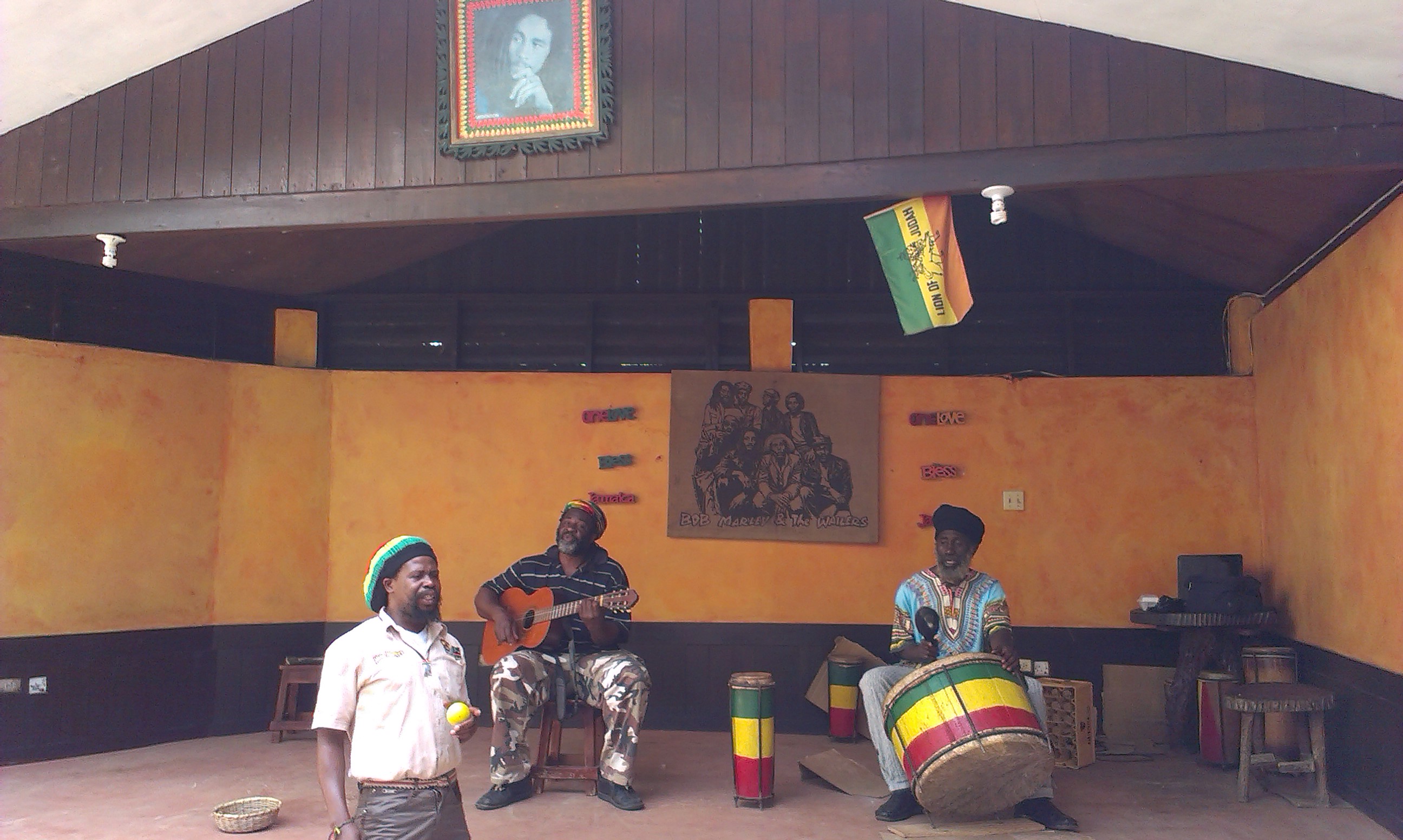 Hela stället badar i rastafärgerna gult, rött och grönt och citat från Marleys låtar. Vi lyssnade mycket på reggae innan vi åkte till Jamaica, för att komma i stämning. Vilken fantastiskt skön musik Marley skapade. Jag är så imponerad av hans produktivitet och nu när jag har varit här så kommer jag lyssna mer uppmärksamt på hans fina texter.