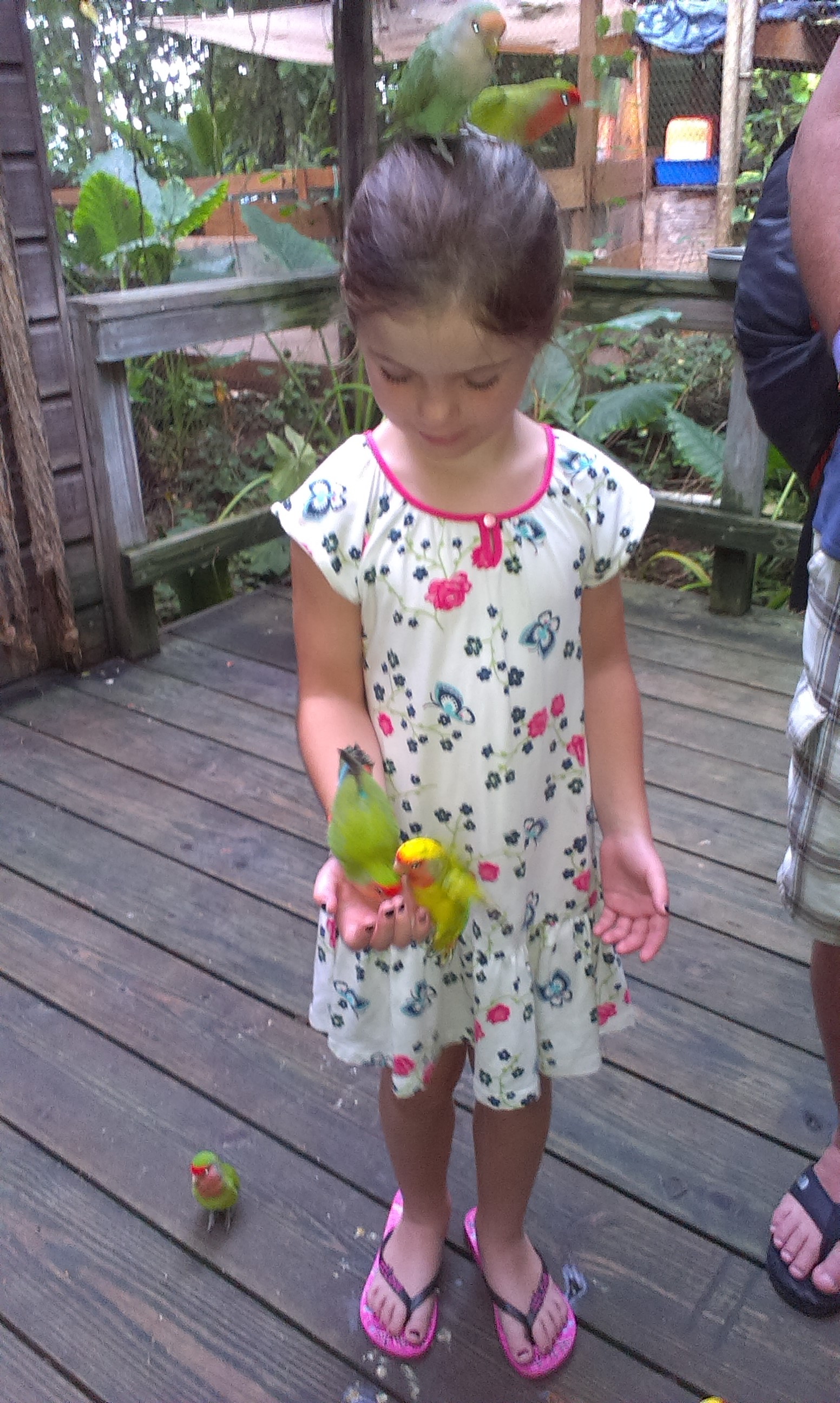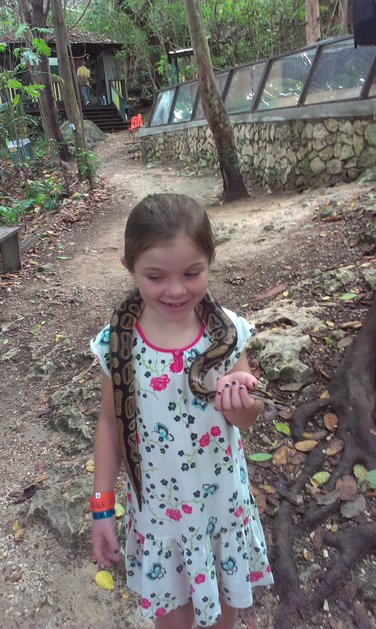 Det finns tre nivåer på kontakten med delfinerna och den lägsta är Encounter där du får klappa och pussa delfinen men inte simma med den. Det fick vår 4-åriga dotter Meja göra men i vuxens sällskap (Pelle i det här fallet) och han fick då betala dels för Encounter och Swim, som är nästa nivå. Swim gjorde jag och Moa som är 7 år och simkunning när Pelle och Meja gjorde Encounter. Sen fick Pelle köra Swim själv med en annan grupp. Det tråkiga är att Pelle därmed fick betala dubbelt och det är ju ingen superbillig aktivitet redan från början, men det är bara betala och se glad ut. Nästa nivå heter Ultimate och den stora skillnaden mellan Swim och Ultimate är nog att med Ultimate simmar du med två delfiner istället för en och får nog lite längre egen tid med delfinerna också. Kommer inte exakt ihåg vad vi betalade för allt men jag tror att aktiviteterna kostar från 74 US Dollar och uppåt per person. Dyrt blir det för hela familjen men så är det också något du gör en, kanske max två gånger i livet. Så det får det vara värt! 🙂