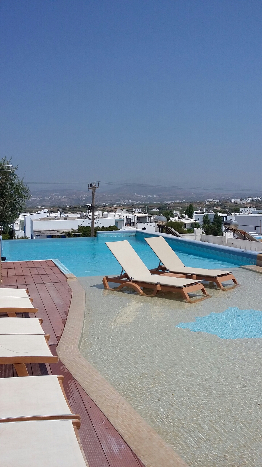 Dagen efter hann vi med lite poolhäng innan utcheckning och avresa till vår tredje ö på resan, Koufonissi som ligger precis utanför Naxos i sydöst. Denna gång en trevligare Blue Star- färja som gjorde två stopp på vägen till Koufonissi. Hade vi tagit snabbfärja hade vi nog varit framme efter en halvtimme, nu tog det det ca två timmar. Men båten var större, matutbudet bättre och utsikten likaså. Dessutom är denna typ av färja mycket billigare (500 kr för oss fyra) än snabbfärjan som vanligtvis kostar runt tusenlappen.