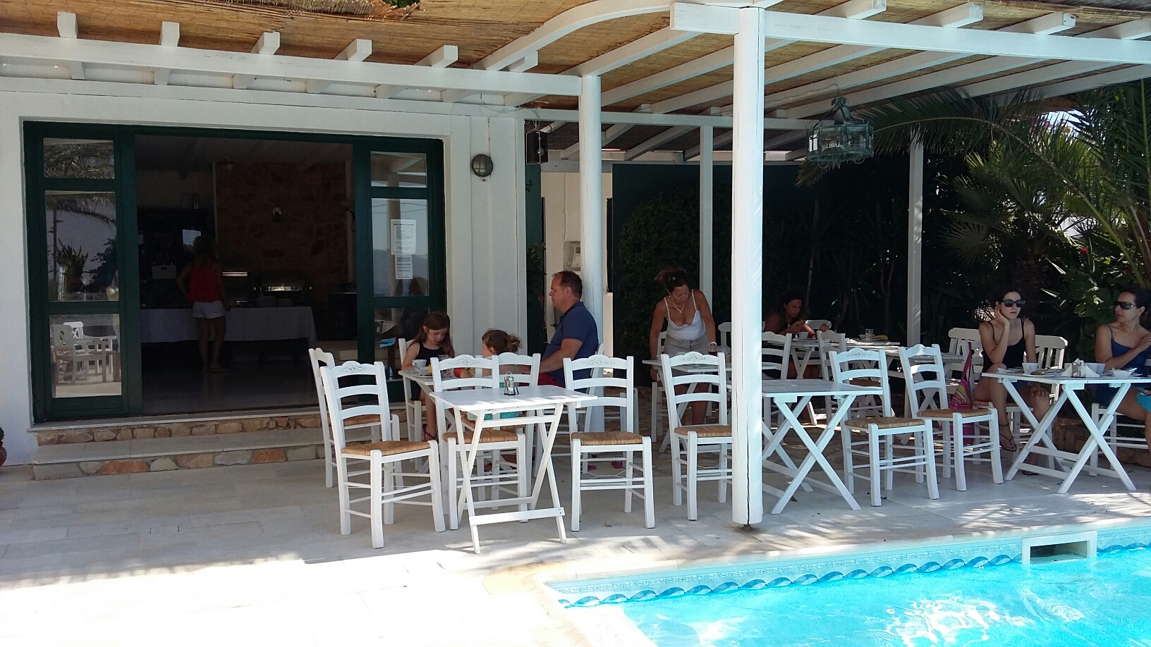 De fyra dagar vi tillbringade på ön blåste det ganska mycket vilket gjorde att det även blåste upp sand. På Pori löste man vindproblemet med att bygga vindskydd av stenar eller som vi att lägga oss bakom en gräsbevuxen liten kulle. Finns en restaurang, helt ok På Pori eller någon av de andra stränderna finns inga solstolar att hyra och du kan ta med ett eget litet strandparasoll.