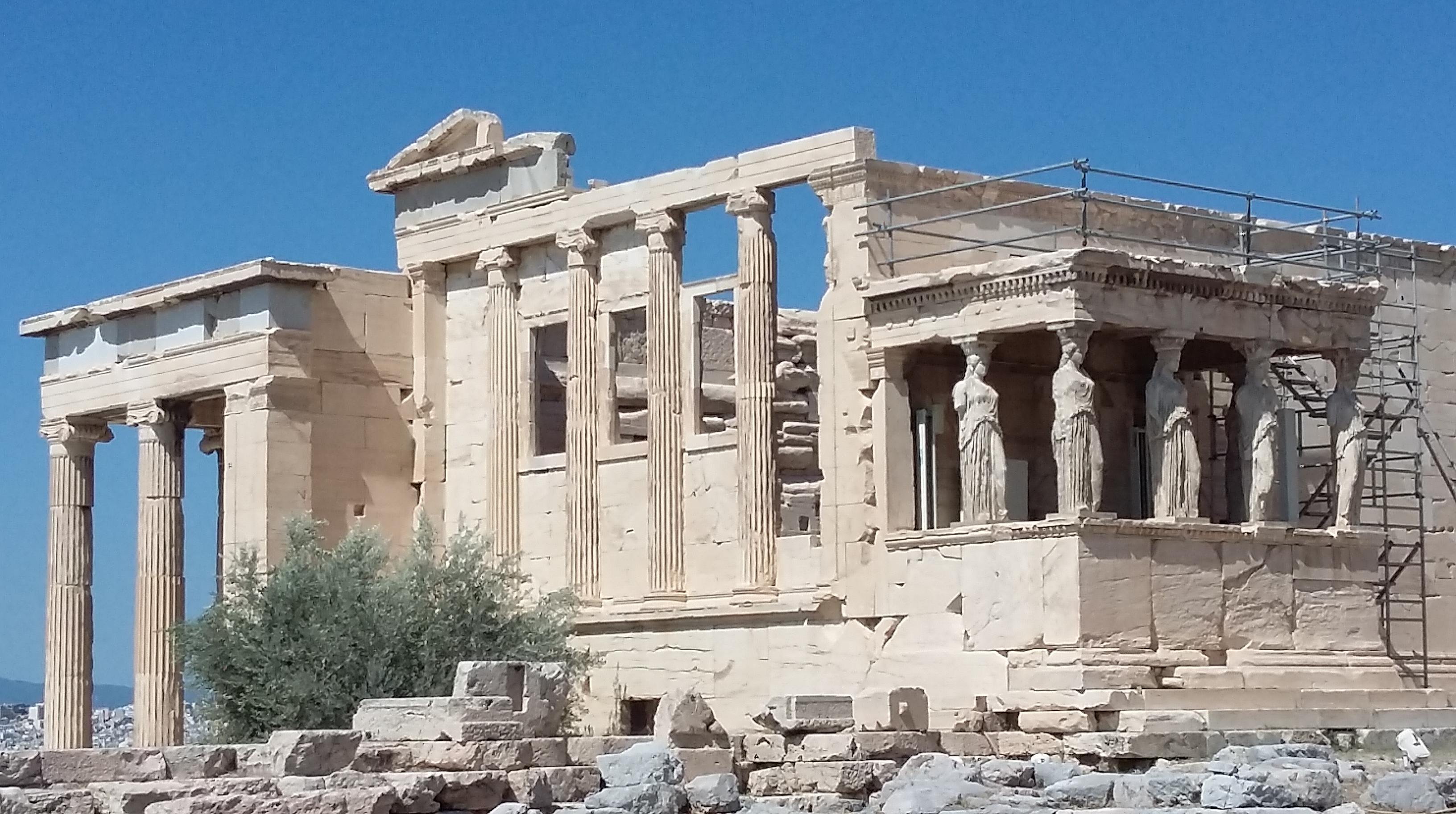 Efter muséet promenerade vi i hettan upp till klippan, Akropolis och fick se det majestätiska Parthenon. Ett tips är att ta med keps/hatt och massor av vatten! Finns även vatten från ett par kranar väl uppe på klippan. Barnen var jätteduktiga men de fick rida lite på våra ryggar och axlar för att distraheras från värmen och det jobbiga i att gå.