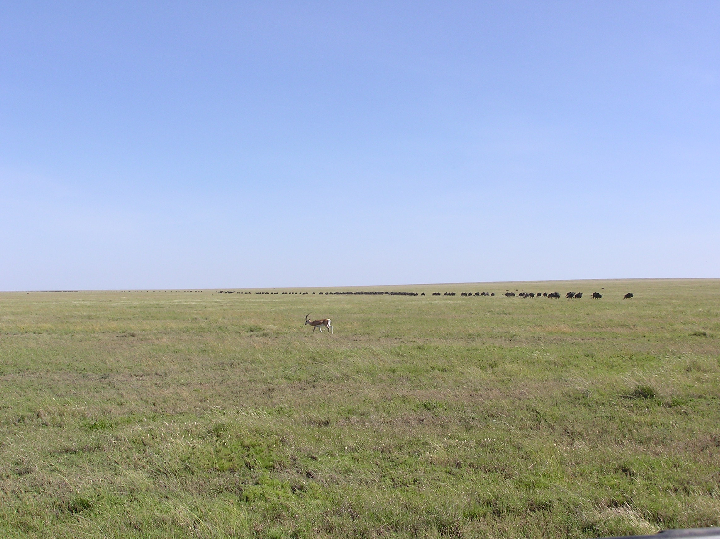 Vi såg Grant´s gazell, Thompson gazell, lejon, buffel, elefant, noshörning, hyena, zebra, gnu, vårtsvin, struts, flodhäst, sjakal och många fåglar. En av höjdpunkterna var fyra geparder som var på jakt och försökte fånga en gnu, men jakten misslyckades. De var senare på nytt spaningsuppdrag, denna gång på zebror.
