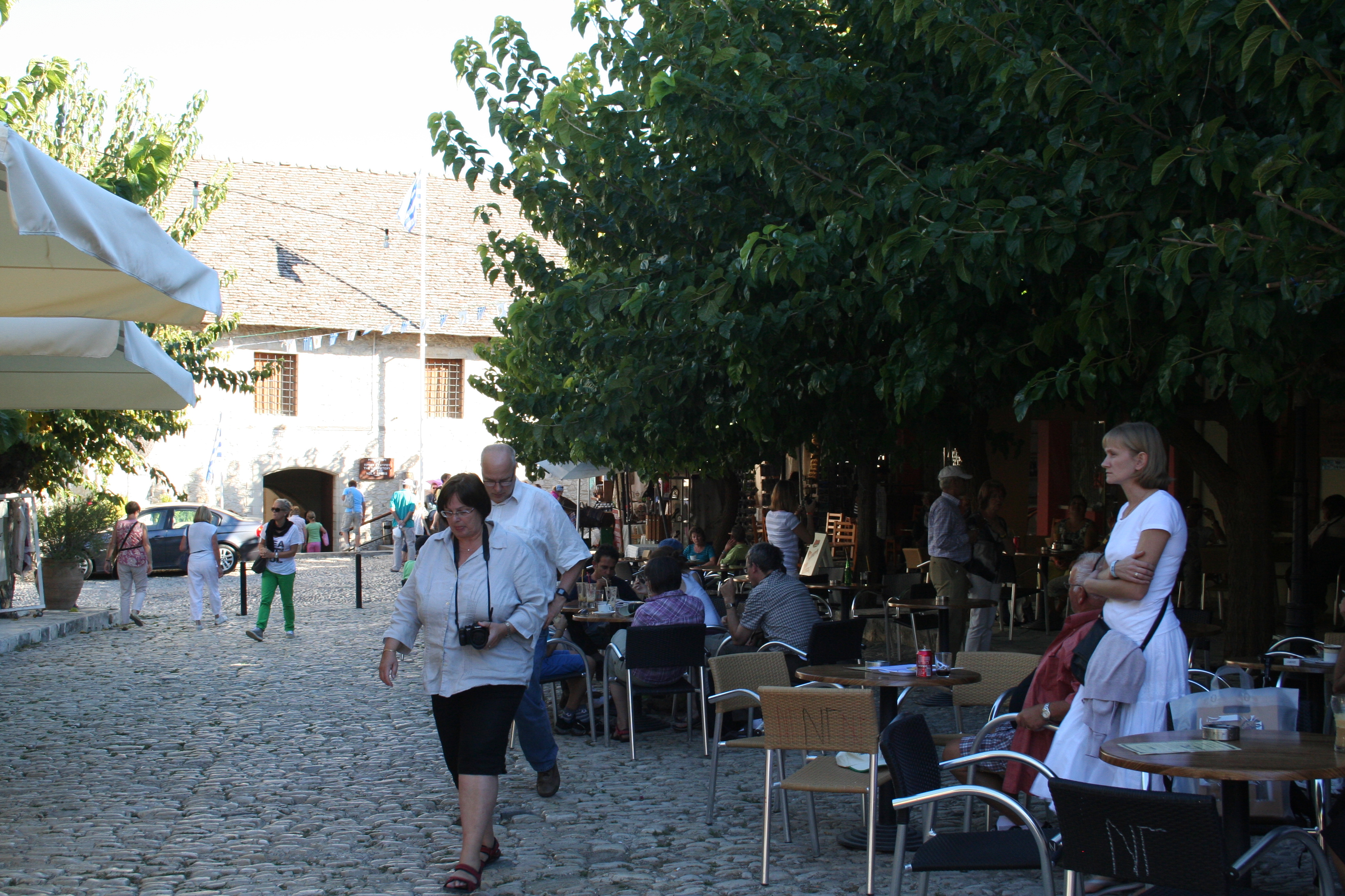 Vi hann också med ett stopp i vinbyn Omodos som ligger i området bland vinodlingarna på Trodoosbergens sluttningar. Här står druvplantorna nödvändigtvis inte i prydliga rader som i Frankrike, Tyskland mm utan lite huller om buller och samsas gärna med olivträd.