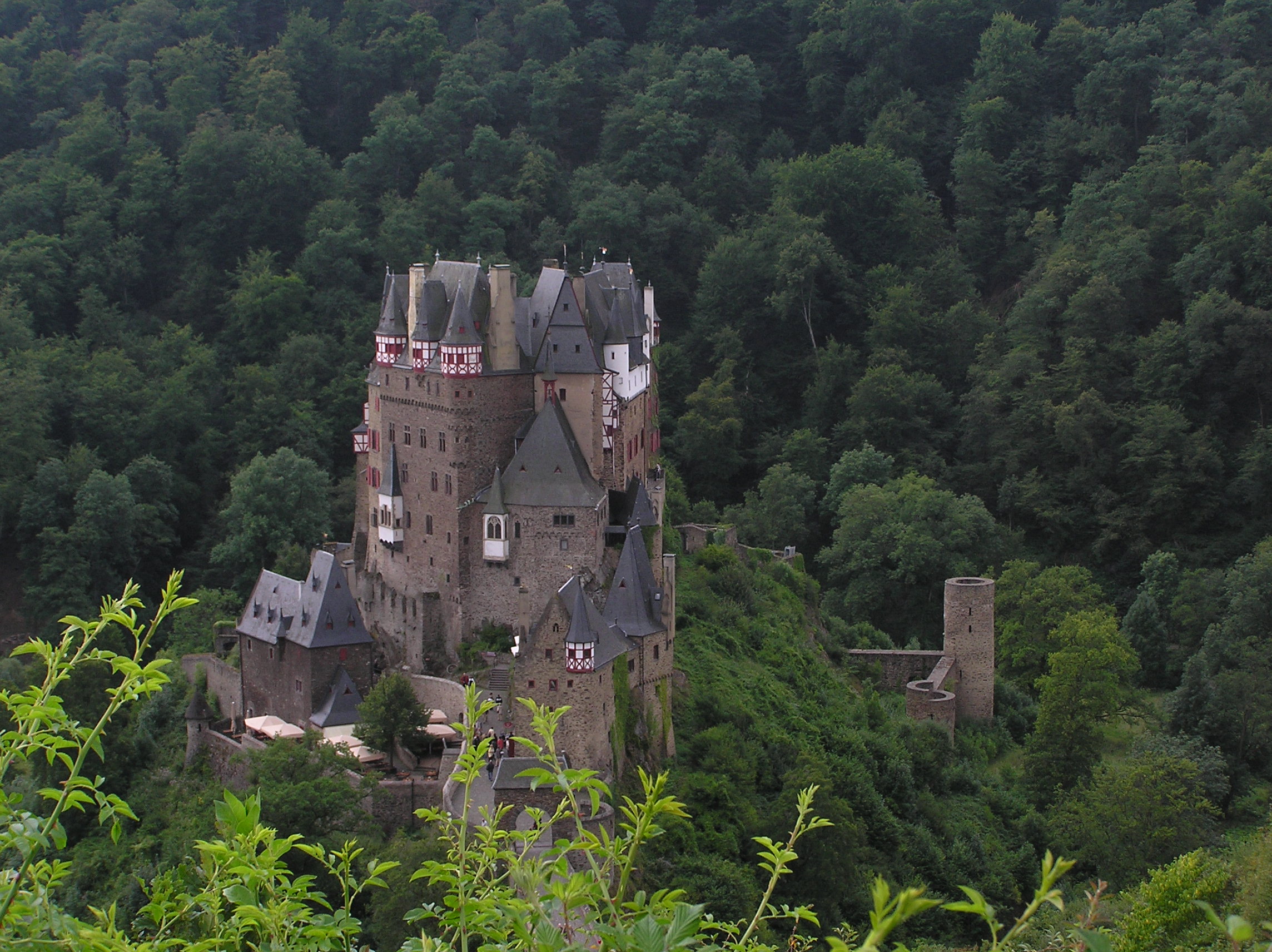 I närheten av moseldalen hittar du också Burg Eltz, ett majestätiskt medeltidsslott som ligger på en bergsklippa mitt i en dal. Ser helt otroligt ut och är ett mycket vackert slott. Slottet är i samma familjs ägo som en gång byggde det.