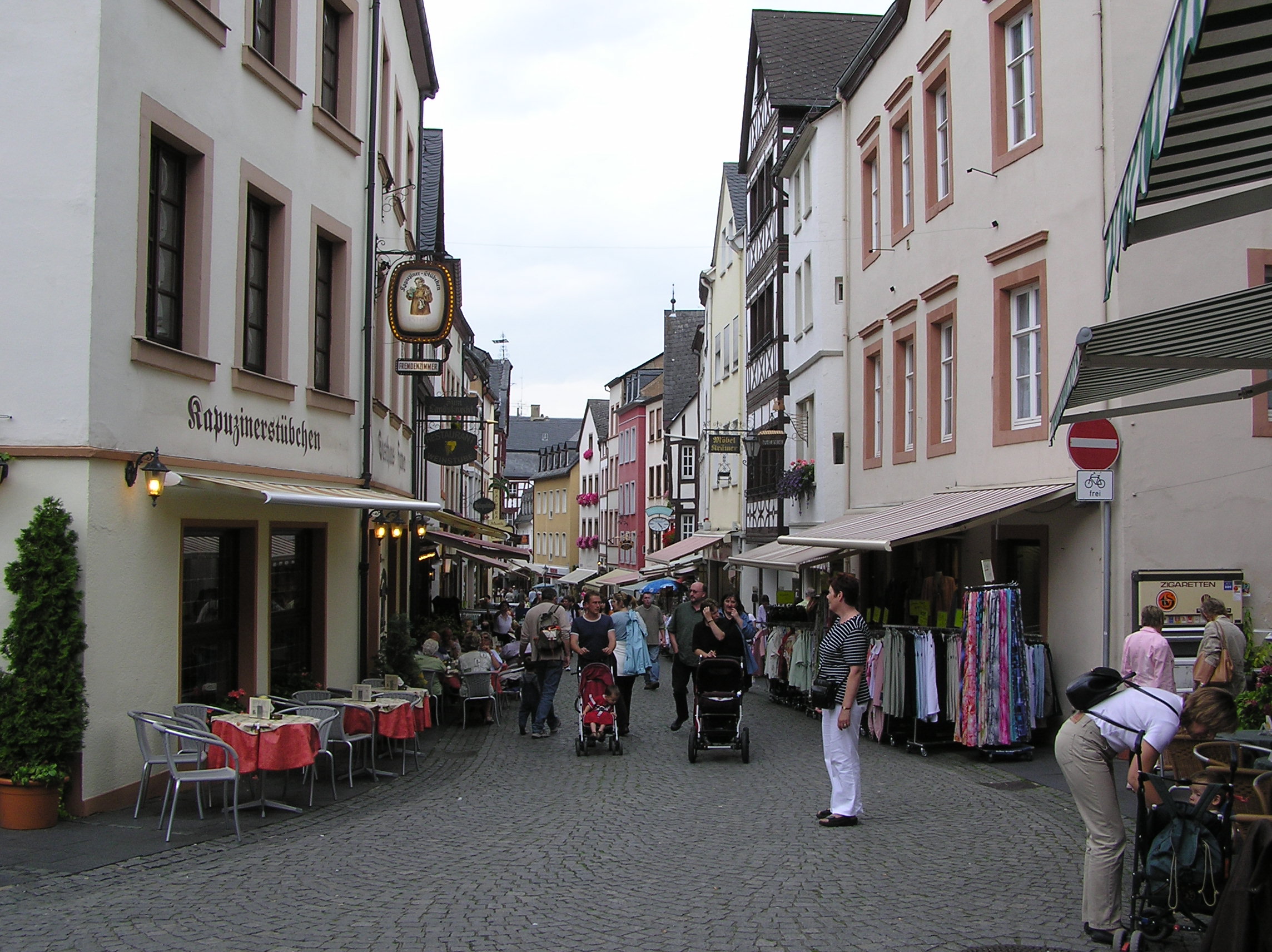 Moselfloden ringlar sig fram mitt emellan vinodlingarna och små trevliga byar med små gasthäuser och vinhus. Många cyklar mellan byarna men vi var bilburna. Här finns byar som Trier som är Tysklands äldsta stad, Koblenz, Cochem mfl men också många mycket mindre samhällen som lever på sin vintillverkning. I Trier föddes också Karl Marx, huset finns kvar att titta på.
