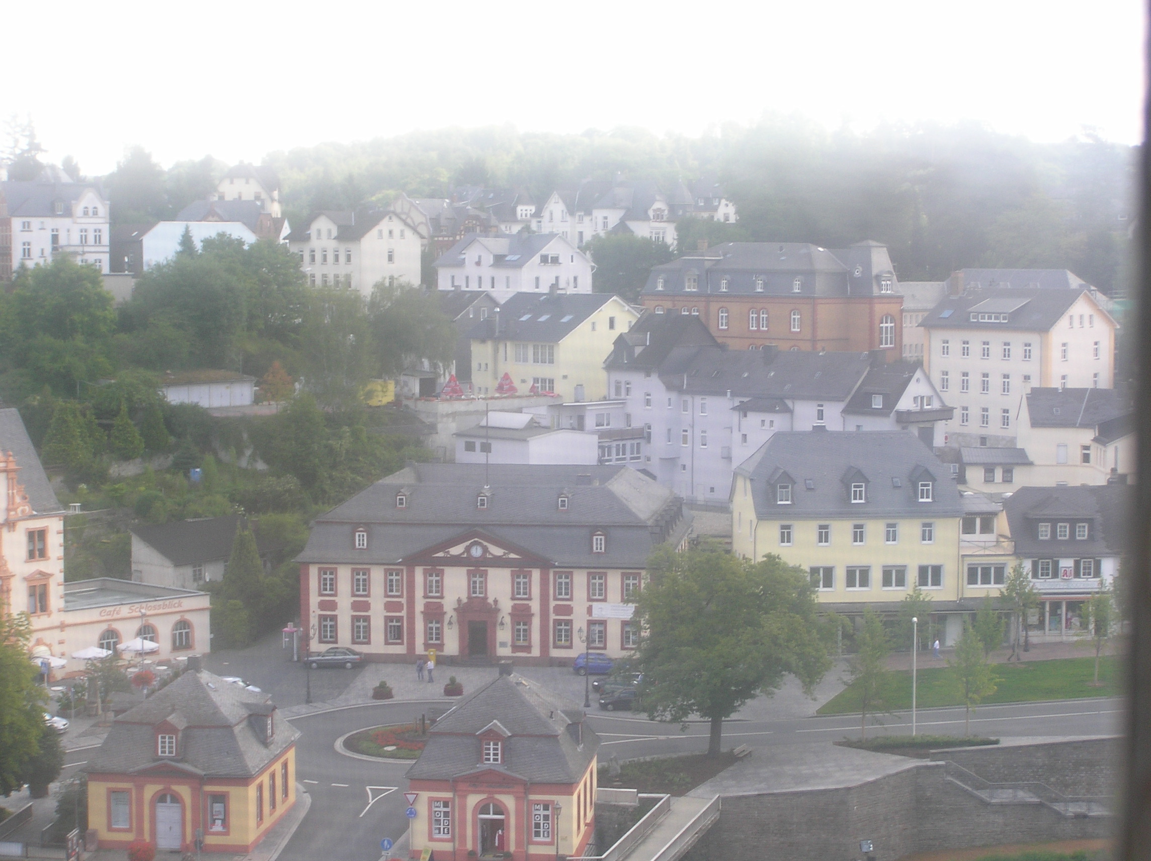 Överst: slottet i Weilburg. Underst: Utsikten från slotthotellets rum.