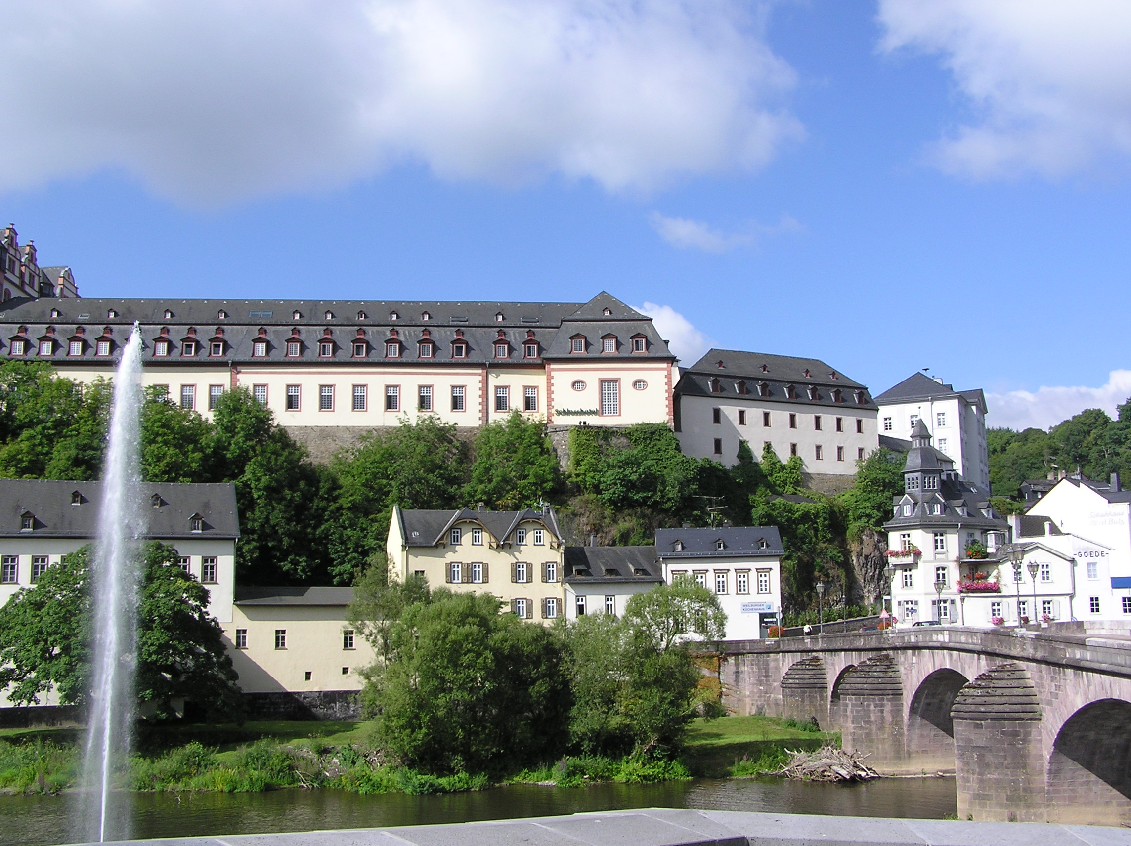 Ta chansen att bo på ett riktigt slott! Vi hittade ett slottshotell Weilburg i samhället Weilburg/Lahn. Rummen är inte typiska slottinredda rum med himmelsängar men det var fin utsikt över staden från rummet och priserna överkomliga. Slottet ligger majestätiskt på en höjd.