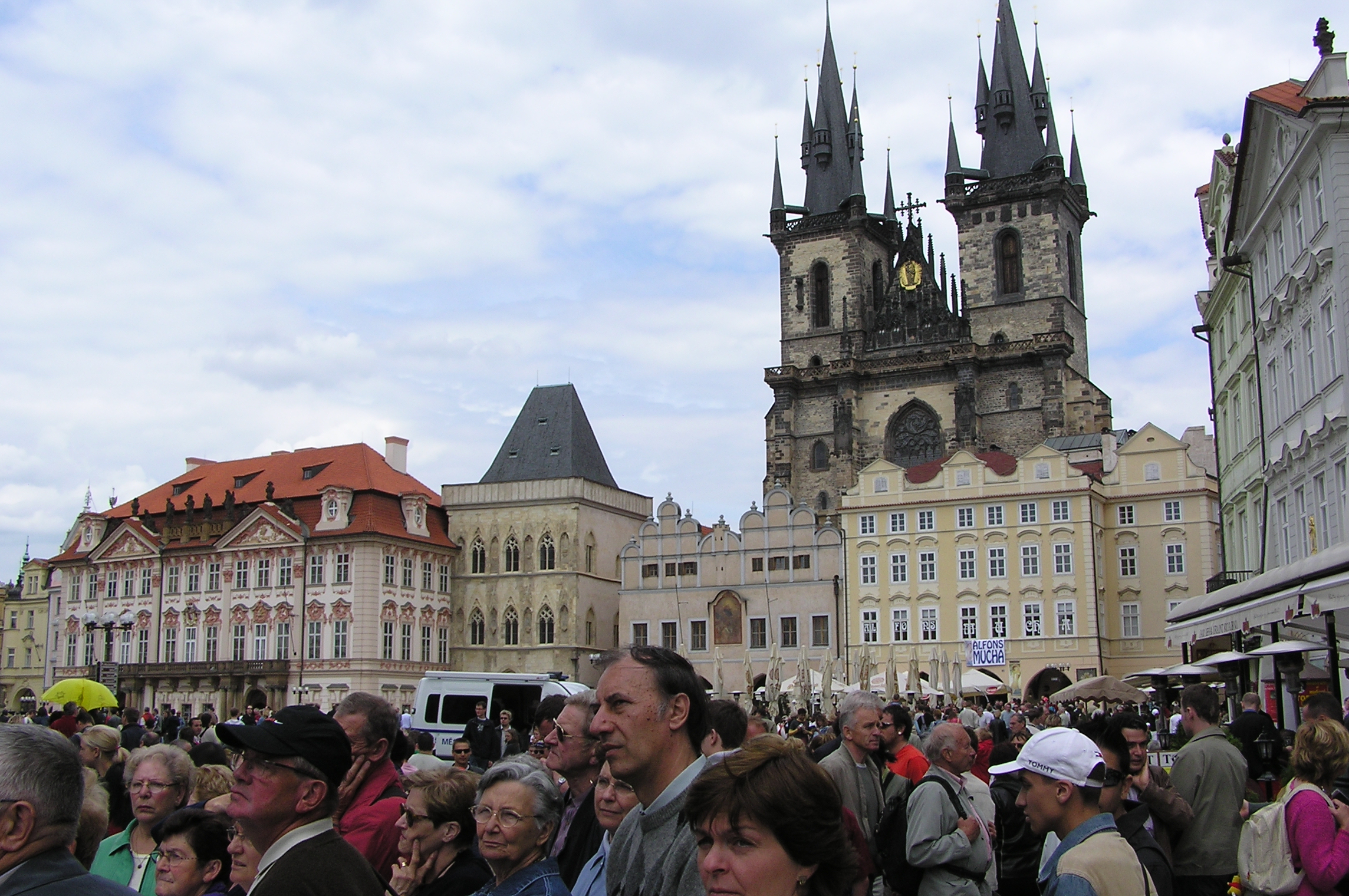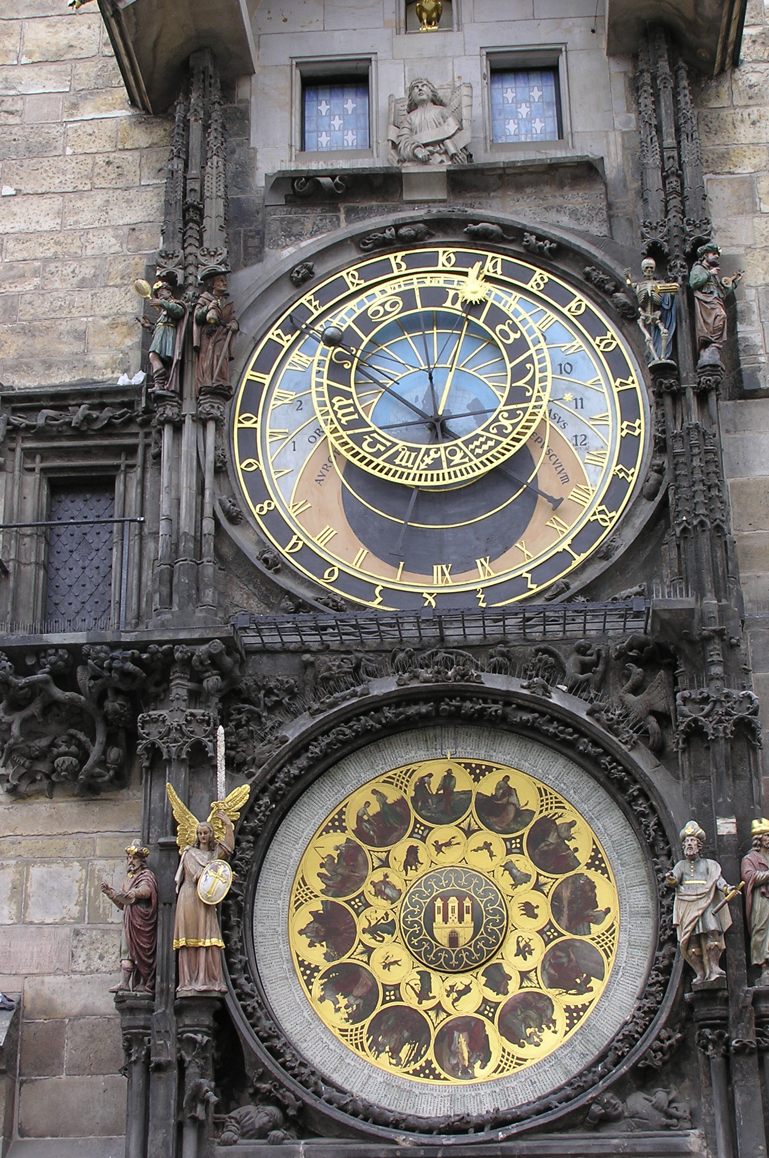 Varje hel timme under dagen samlas här stora skaror av människor och tittar upp mot tornet med det astronomiska uret. Då öppnar sig ett par blå luckor och ut kommer Kristus och de tolv apostlarna. Det konstruerades redan 1410 och blev lite förstört under andra världskriget men reparerades 1948 och tickar sedan dess. Klockan visar inte bara tiden utan solens och månens position. Och både böhmisk och babylonisk tid. Gör dig inte besvär med att gå hit på kvällen, kl. 20 går figurerna och lägger sig för att vakna och underhålla folkmassorna igen kl. 8 dagen därpå.